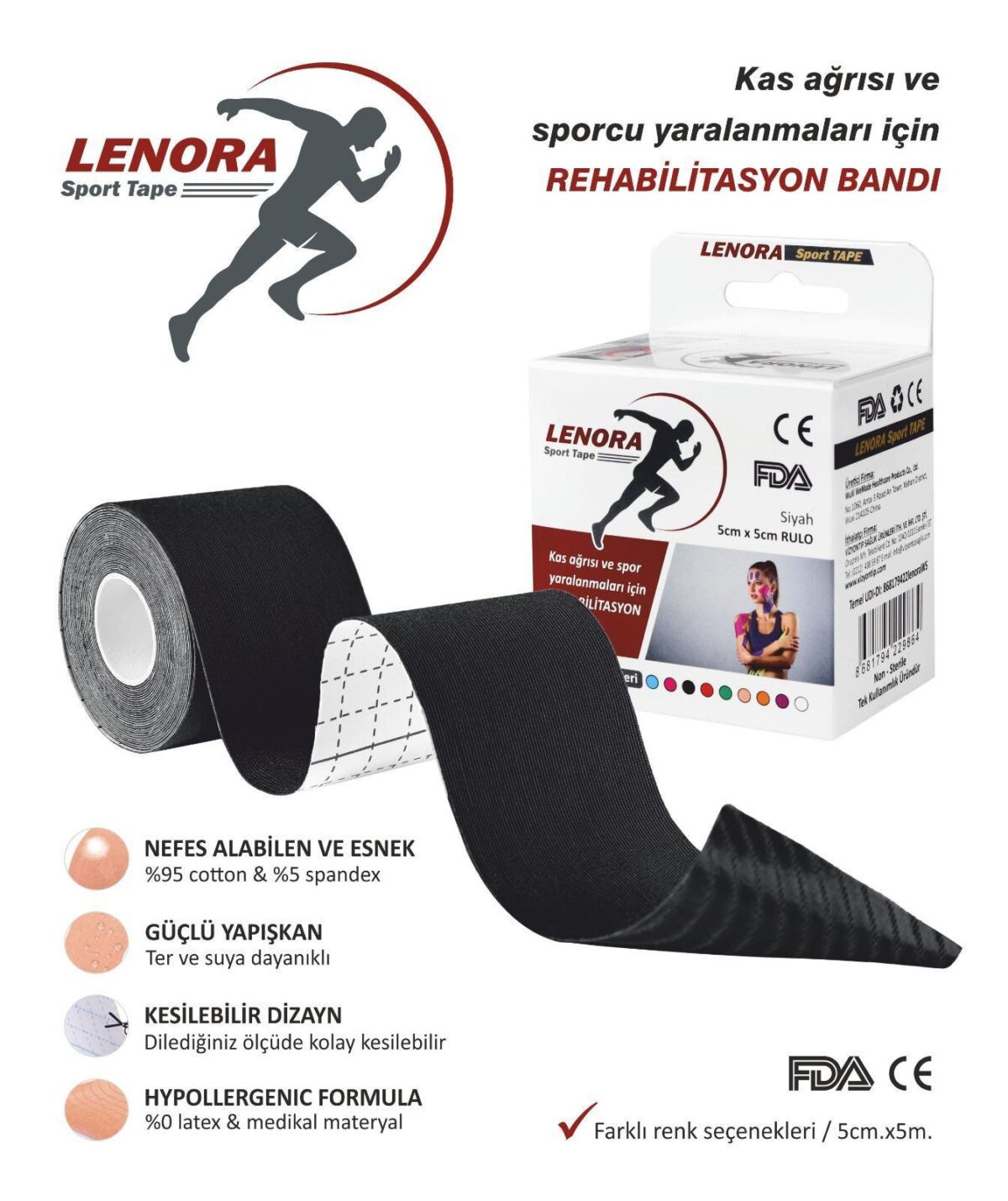 Lenora Kinezyotape Ağrı Sporcu Bandı-Siyah